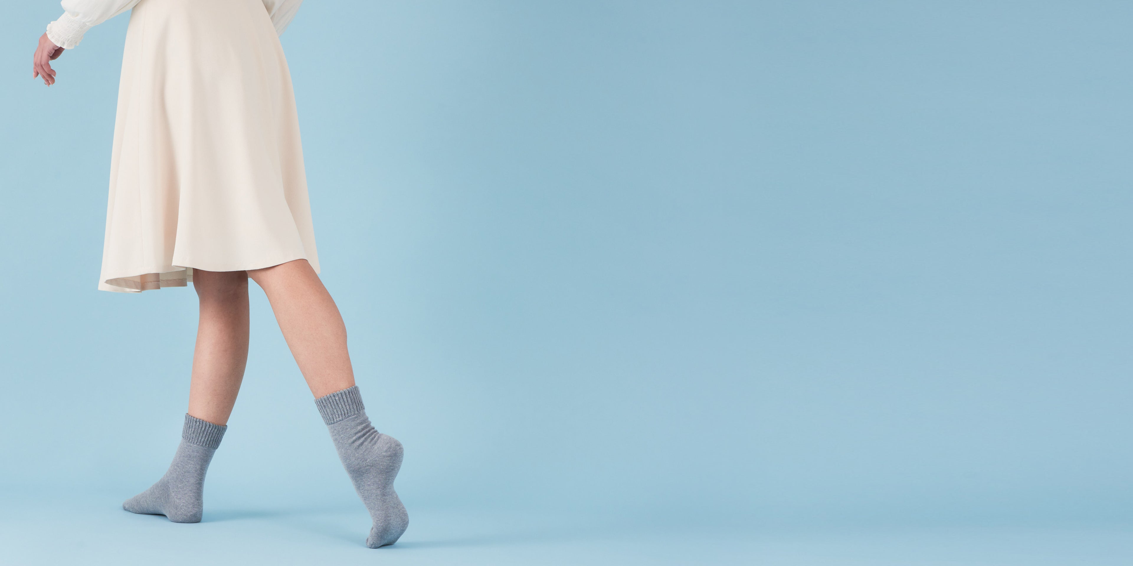 Among them, our Smooth Heel Socks are popular with both women and men, and are particularly suited for those who spend a lot of time on their feet. These socks moisturize and care for cracked heels all on their own, as well as limiting swelling by being tight enough without constricting.